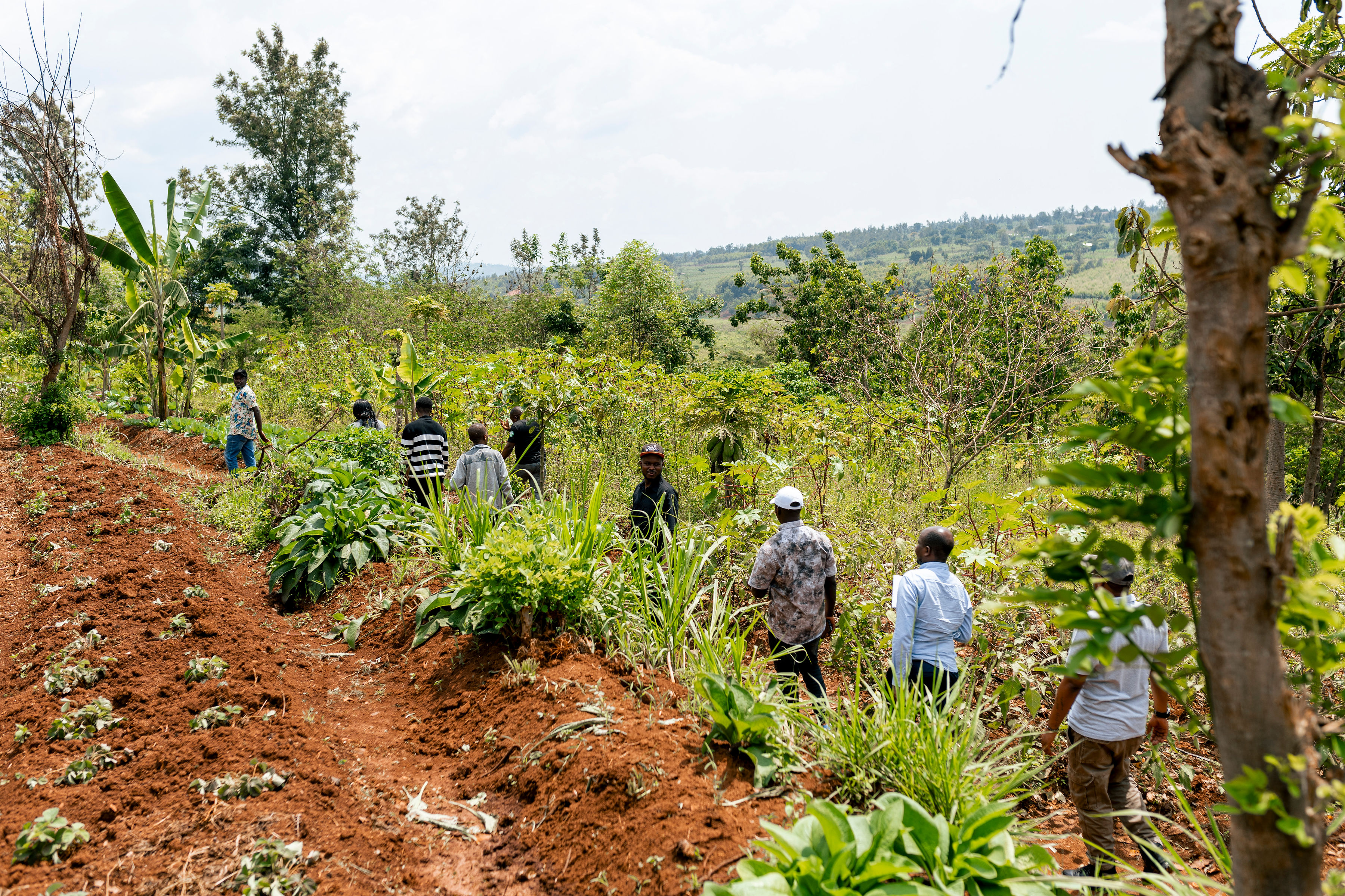 On the first day, journalists visited Knowledge Centre for Organic Agriculture (KCOA) demonstration farm in Ngoma District, managed by Albert Nkunda, where they observed organic farming methods and learned about sustainable crop management.