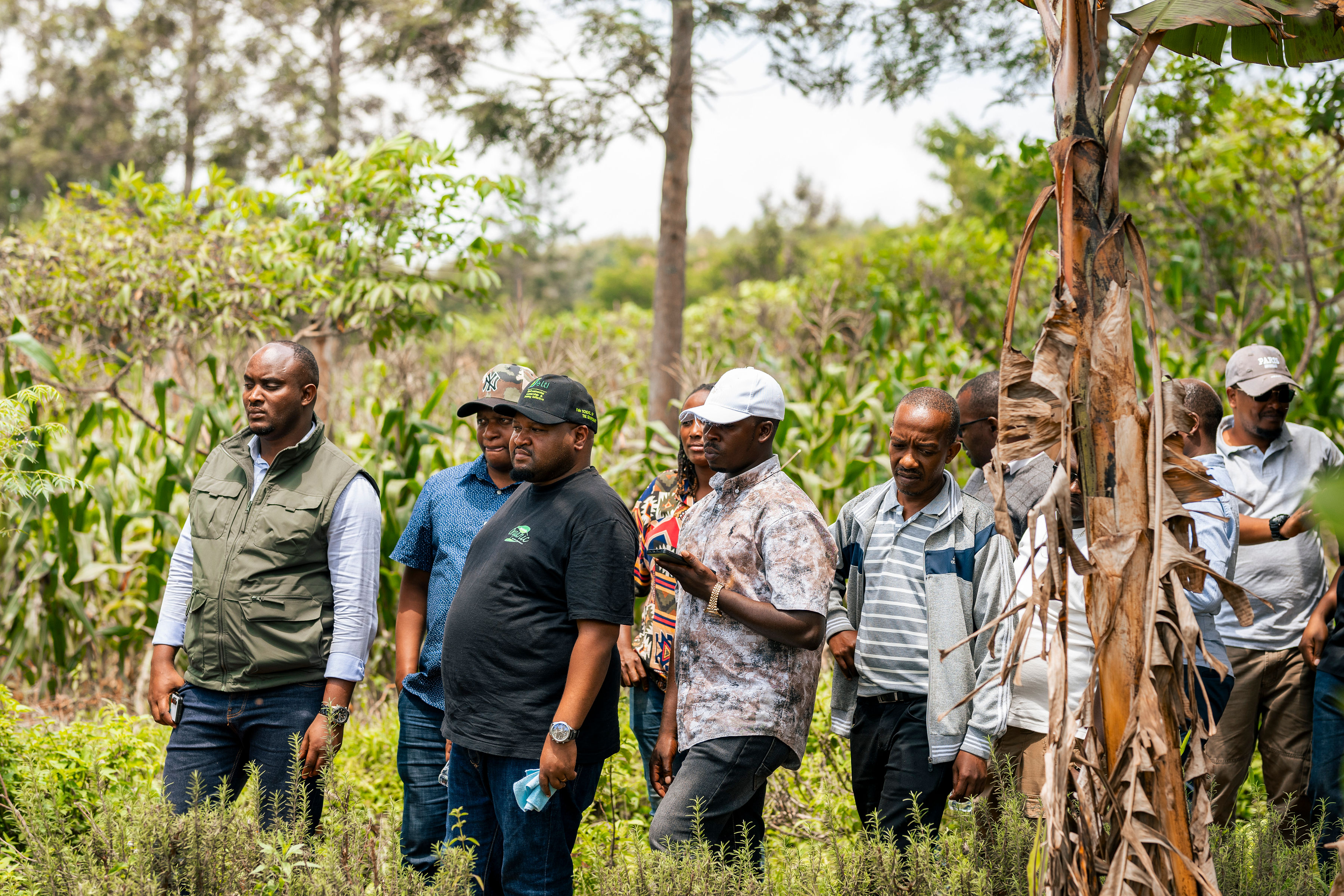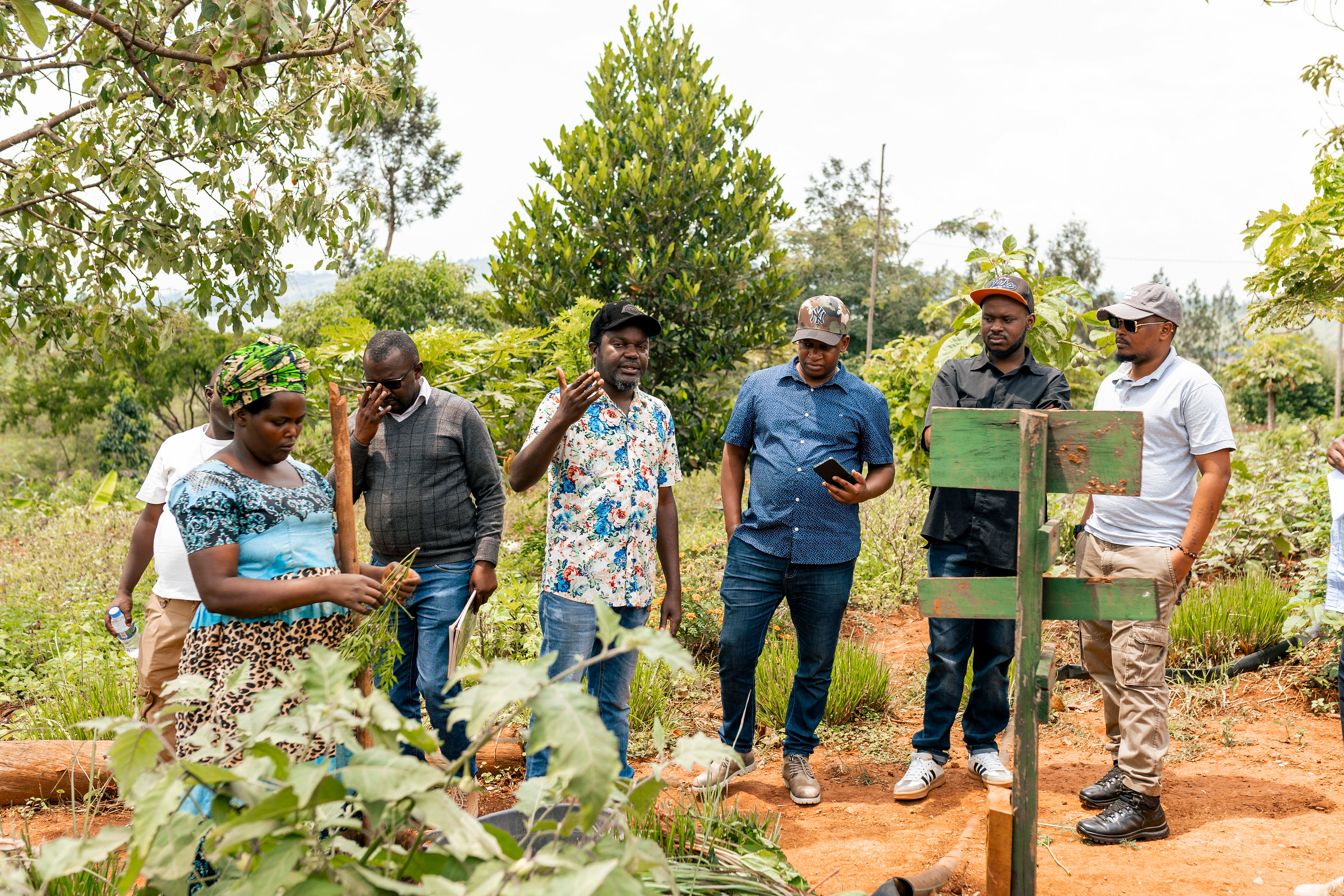 On the first day, journalists visited Knowledge Centre for Organic Agriculture (KCOA) demonstration farm in Ngoma District, managed by Albert Nkunda, where they observed organic farming methods and learned about sustainable crop management.