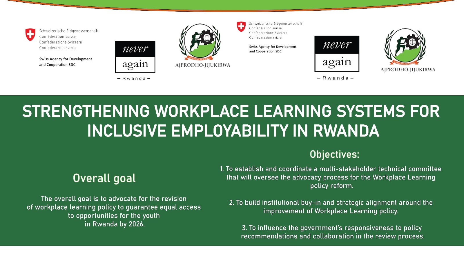 "Strengthening workplace learning is crucial for inclusive employability in Rwanda," said Julius Kwizera, Executive Secretary of AJPRODHO–JIJUKIRWA.
